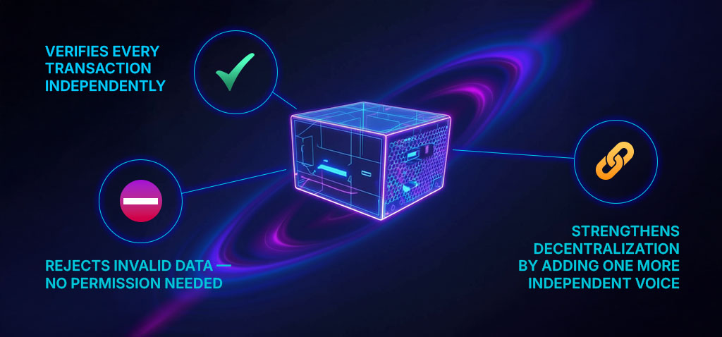 Each one checks every new transaction and block.